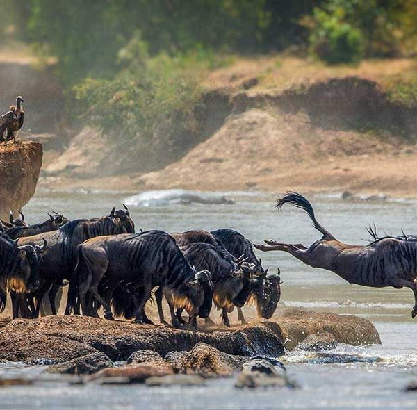 After breakfast drive with packed lunch to Mara river focusing on migration animals, game drive on route before reaching the river, after arrive will find congregation of animals, waiting for them to cross the river, lunch at designed picnic area. Evening on route game drive back to the camp for dinner and overnight.